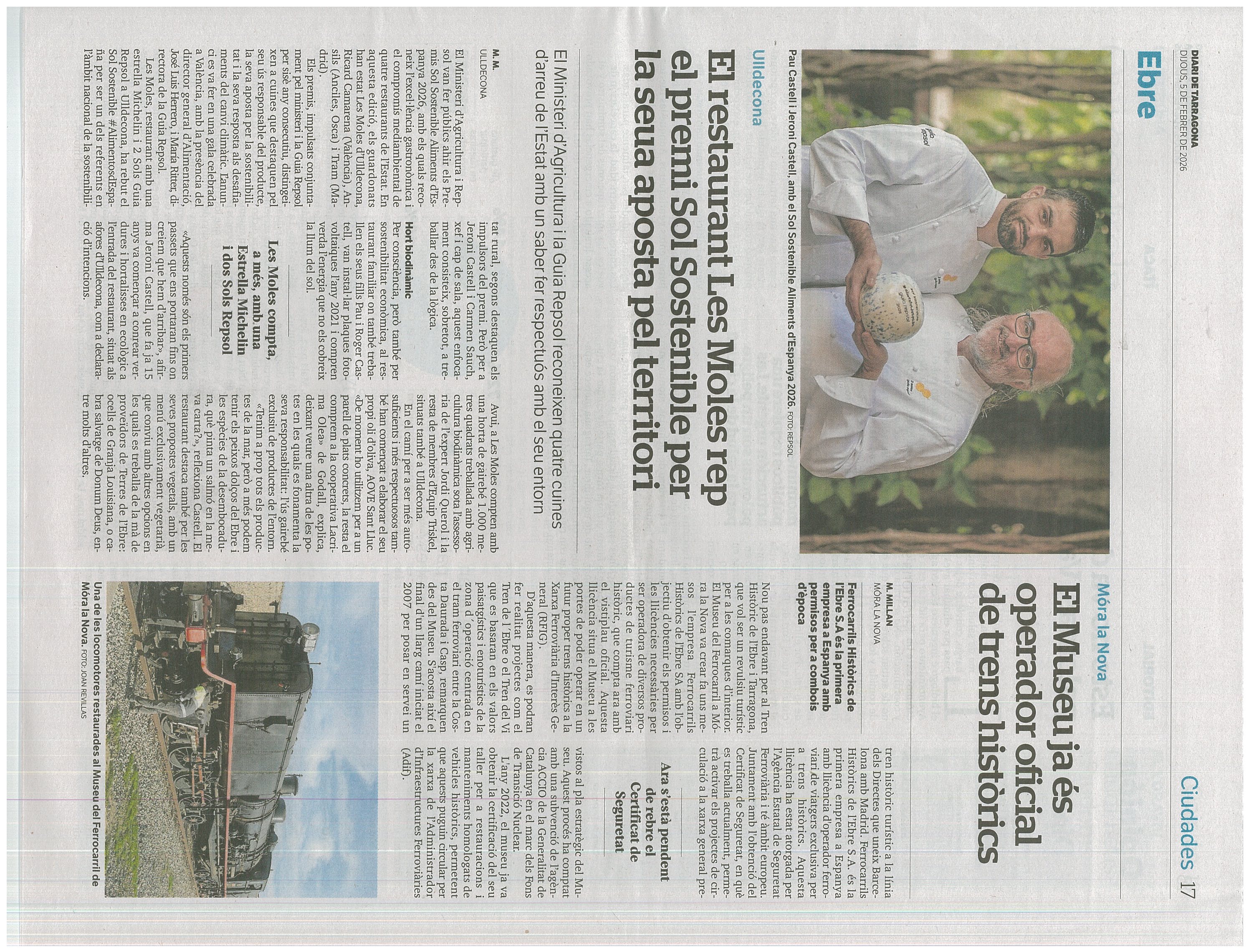 “Les Moles d'Ulldecona entre els quatre premiats amb el Sol Sostenible ·alimentosdespaña 2026,” Biblioteca Digital d'Ulldecona, accessed February 12, 2026, https://tramits.ulldecona.cat/noticies/items/show/5896.
