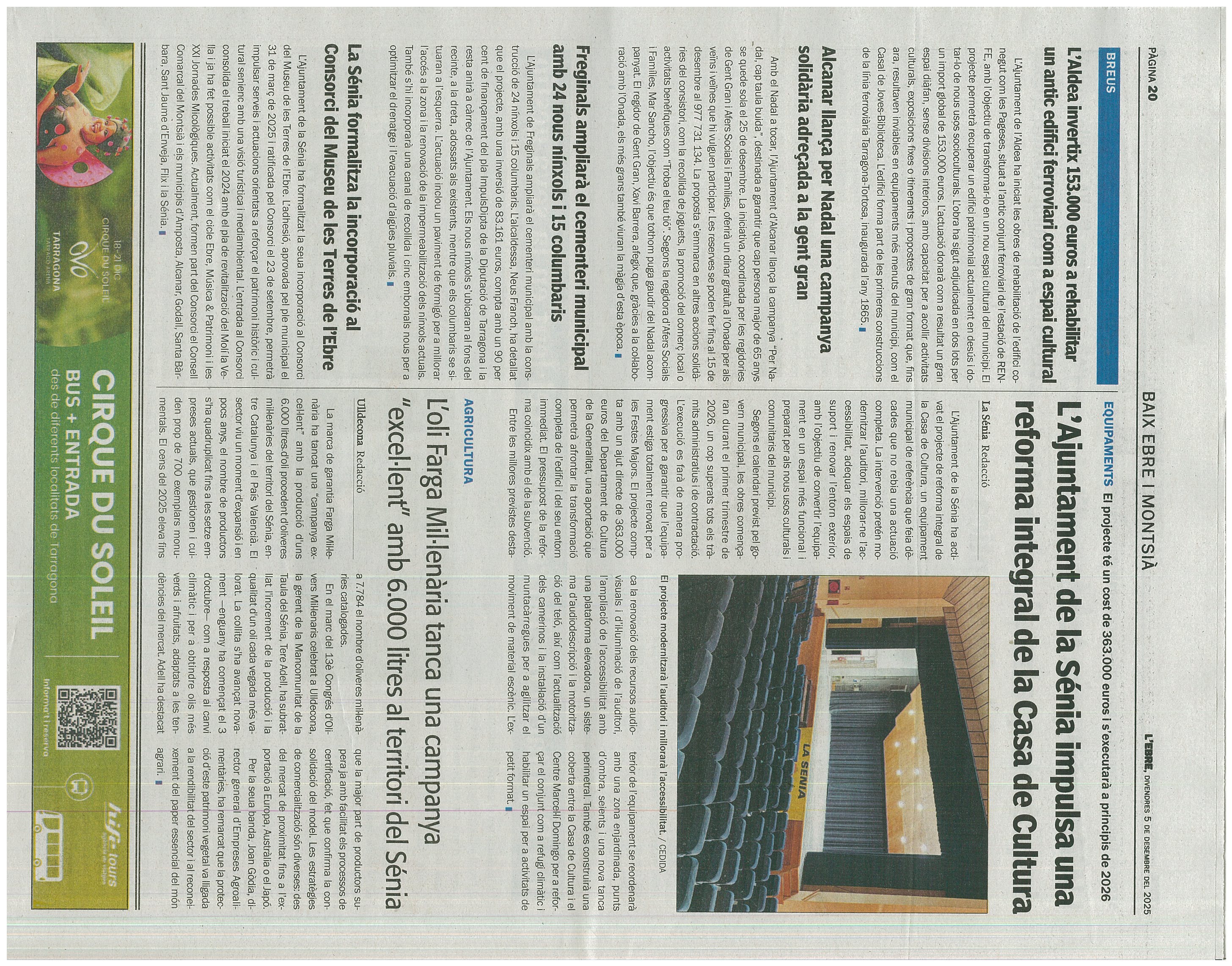 “L'oli Farga Mil·lenària tanca una campanya "excel·lent" amb 600 litres del territori del Sènia,” Biblioteca Digital d'Ulldecona, accessed February 12, 2026, https://tramits.ulldecona.cat/noticies/items/show/5900.