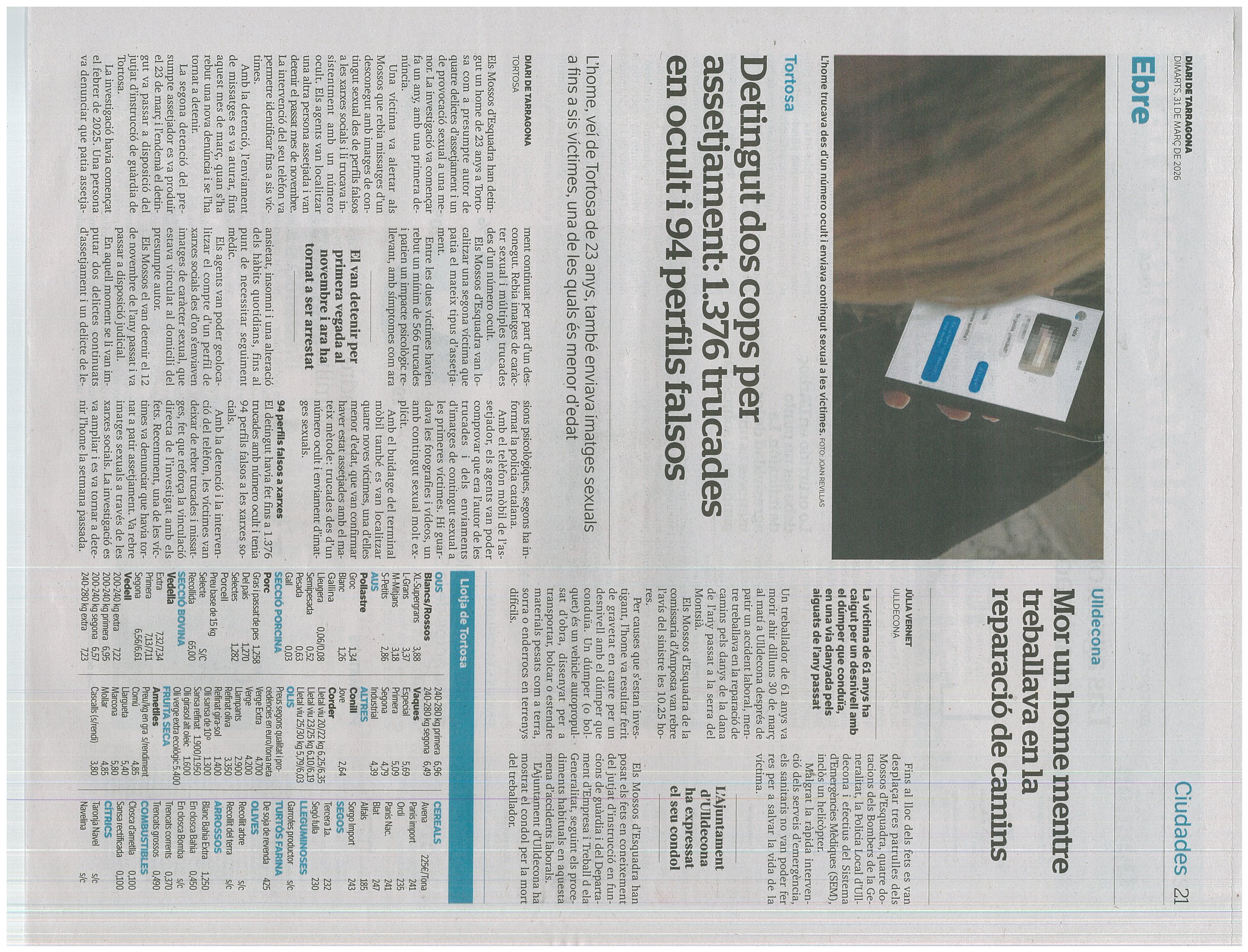 Júlia Vernet, “Mor un home mentre treballava en la reparació de camins,” Biblioteca Digital d'Ulldecona, accessed April 14, 2026, https://tramits.ulldecona.cat/noticies/items/show/5920.